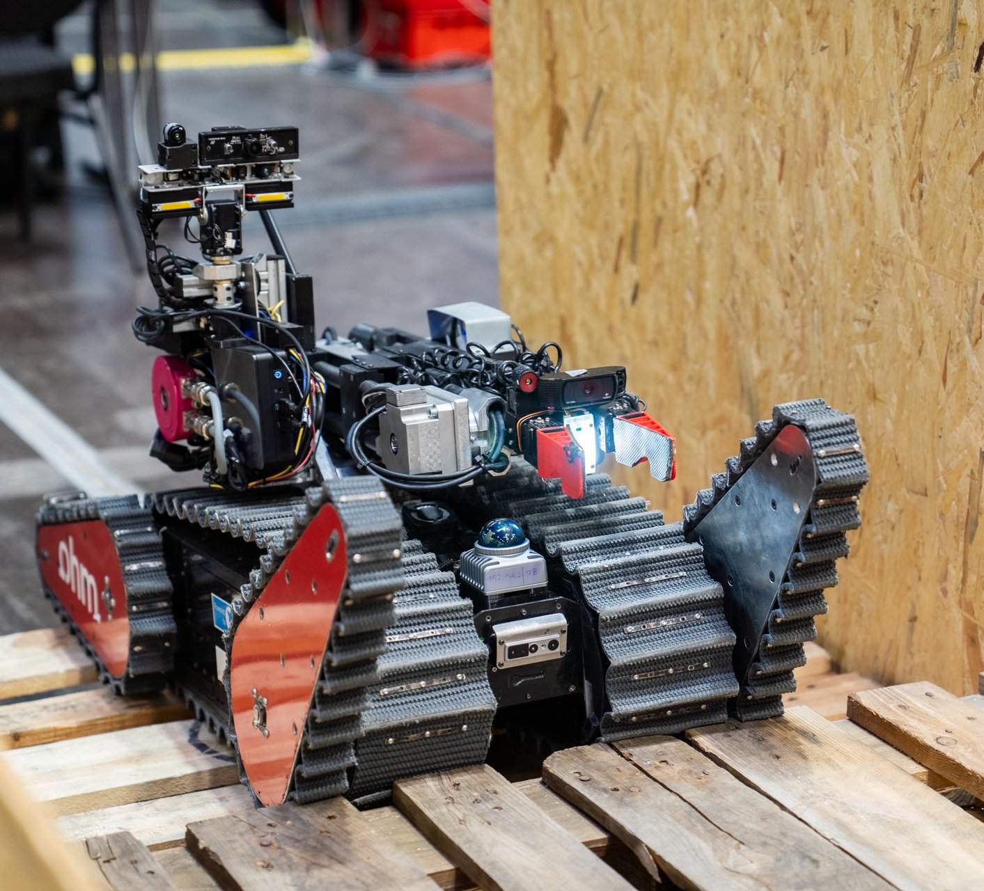 The robots have to find survivors and create maps in a recreated disaster scenario. They mostly move on tracks and are equipped with a variety of sensors, such as laser scanners and thermal cameras. The intuitive control interface for the tele-operator is important.
